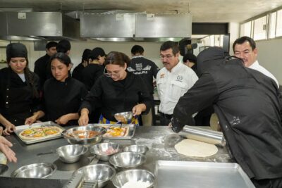 Finalmente, Dámaso Anaya visitó el Centro Gastronómico y presenció una práctica de elaboración de alimentos, donde convivió y dialogó con los jóvenes, quienes le agradecieron el compromiso de apoyar los proyectos para mejorar su Facultad.