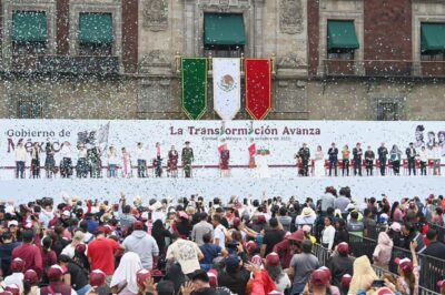 Ciudad de México. – Con un mensaje de confianza en el rumbo del país y en las mejores oportunidades para el desarrollo de la entidad, el gobernador de Tamaulipas, Américo Villarreal Anaya, acompañado por la doctora María de Villarreal, presidenta del Sistema DIF Tamaulipas, atestiguó el mensaje de la presidenta Claudia Sheinbaum Pardo, con motivo de su primer año de gobierno pronunciado en el Zócalo capitalino.