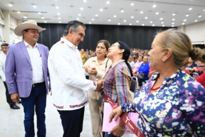 Durante la entrega simbólica a 30 de las dos mil beneficiarias presentes, acompañado por Luis Lauro Reyes Rodríguez, delegado de Programas Federales para el Desarrollo en Tamaulipas, y de Silvia Casas González, secretaria de Bienestar Social, el gobernador mencionó que, tal como lo ha señalado la presidenta, este apoyo es un reconocimiento a la contribución que durante muchos años han tenido las mujeres como protectoras de la familia y protectoras de los valores más valiosos de la formación e integración de la sociedad.