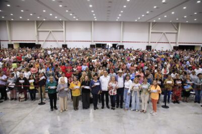 Ciudad Victoria, Tamaulipas.- Al presidir la entrega de tarjetas del programa Pensión Mujeres Bienestar a dos mil tamaulipecas reunidas en el Polyforum de esta capital, el gobernador Américo Villarreal Anaya destacó la visión humanista de la presidenta Claudia Sheinbaum para reconocer a quienes han contribuido a forjar una mejor sociedad en Tamaulipas y en México.